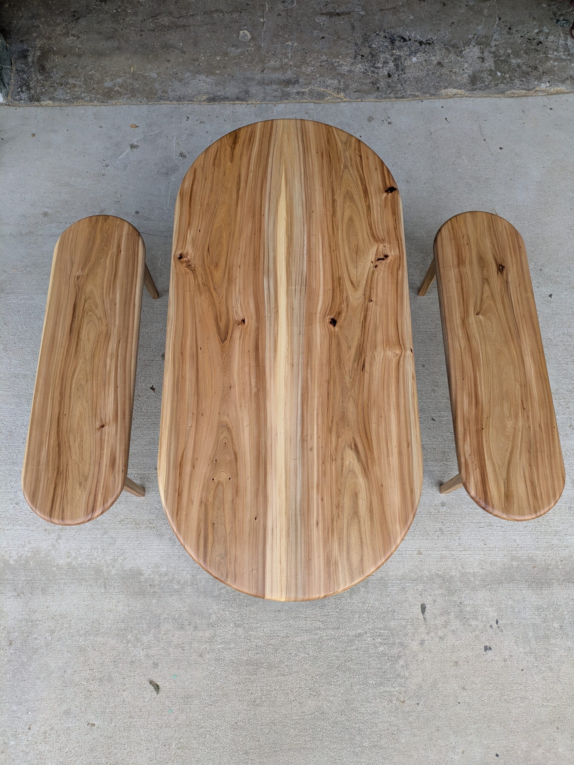 T&C Dining Table & Benches posted on October 31, 2025 American Elm Table – 30″H x 35″W x 75’L Bench – 18″H x 16″W x 54″L